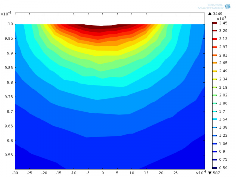 Ø The temperature isotherm obtained after single discharge simulation looks like a hemispherical bowl.