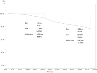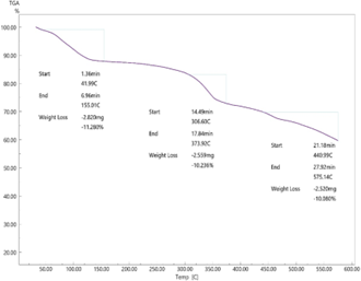 Heating Procedure: Heat was regulated at 10℃/min from 30℃ to 600℃ for the samples. This technique measured sample weight loss as a function of temperature.