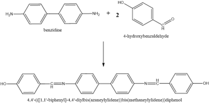 Figure 1. Synthesis of 4,4’ (([1.1’biphenyl]-4, 4’-diylbis (azanylidene)) bis (methanylylidene)) diphenol (4)