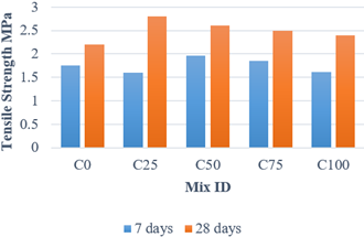 Figure 10. The tensile strength of the coarse aggregates’ replacement mixture