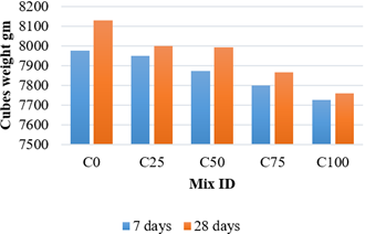Figure 6. The cube's weight of the coarse aggregate replacement mixture
