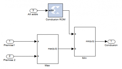 Figure 17. Hardware description of the fuzzy controller implemented with XSG