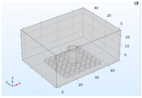 COMSOL Multiphysics appeared to be best suited to the problem of CND-CF [8]. Its particularity is to have a database of equations allowing to modelized different physical phenomena, as the problem dealt with electromagnetism. Advanced features make it possible to modify the specific computer. The CND-CF device to be studied is composed of an absolute pancake type sensor operating on a sample of particles of circular shape Figure 2.
