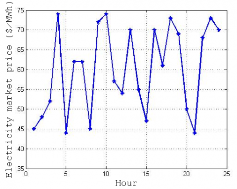 Figure 4. Variable electricity market price of hourly curve