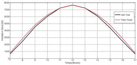 Figure. 8 shows the difference of the power between a solar power plant with one and three towers.