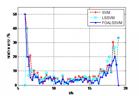 (2) From the 6 to 8 o’clock in the morning, the forecasting errors are relatively larger. Because of the humidity has an effect on the PV power generation system, the curve of output power is unstable. However, there is obvious correlation between the human body amenity and humidity, which causes the good forecasting performance by the FOALSSVM in this time quantum.