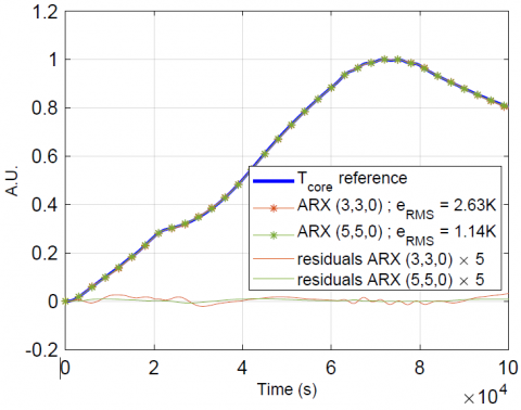Thus, through ARX models, the Tskin – Tcore transfer functions identified on a reference case are also sensitive to experimental data and the observable eRMS/eRMSref makes it possible to classify exchangers of the same series according to a reference that is given.