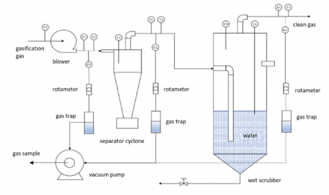 Gas cleaning is an essential component of any biomass gas installation in order to meet the end-user specifications for syngas. For example, for applications as fuel in internal combustion engines (ICE), which require tar compound and particulate concentration limits of around 100 mg/Nm3 and 30 mg/Nm3, respectively [2]. Conventionally, gas cleaning is performed using various systems, such as wet-dry and wet-cleaning. Most frequently, wet scrubbers are utilized in gasification processes for cleaning syngas, conditioning gas temperatures, and capturing smaller particles.