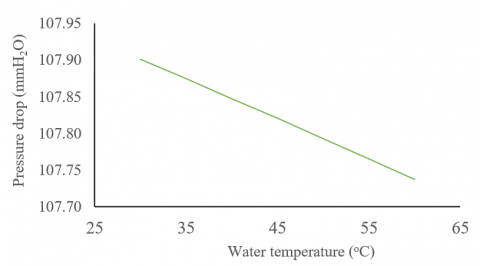 Figure 6. The relationship between water temperature and pressure drop in a wet scrubber