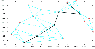Figure 7 shows the simulated network for a randomly distributed node in a 200 × 200 m2 network area. Each node in the network is allotted with a distinct node ID, bandwidth, and power level. Nodes with a range of 45m in distance are declared as direct link nodes. All link nodes exchange their registered link nodes to form possible paths for communication as shown in Figure 8. The proposed risk factor is computed to form a sub cluster as shown in Figure 9 below. Based on the power level and reward factor, a shared head node is selected and all linked nodes are registered to the head node for data exchange, selecting a suitable path as shown in Figure 9.