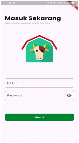 Figure 8 is a display of the login page of the smart kandang application user. This page is used by the user to ensure that the person who will control the cow shed is the officer or owner of the cow shed concerned. This is very important because users can set the smart cage system either manually or automatically. So that when controlling automatically, field officers must ensure that the temperature, humidity and odor parameters of the cage have been set according to the needs of the cow shed so that the cows get a comfortable environment. Figure 9 shows the cow shed information page based on the sensor values used in the smart cage. The process of sending data from the sensor to the application is carried out using wireless media using the Hypertext Transfer Protocol (HTTP) protocol.