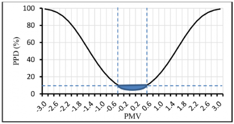 Figure 1. Predicted mean vote predicted - percentage of dissatisfied [PMV - PPD] chart