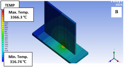 The ANSYS thermal model evaluated the joint thermal gradient in X, Y, and Z directions using the heat flux equation illustrated in Eq. (2). This study used moving heat source energy-based balance on control volume within the specified study area. Thermophysical characteristics of the materials strongly impact the item and show a clear relationship with temperature, leading to non-linear heat transmission [17].