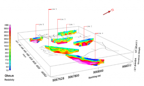 Based on the Bolistick model (Figure 7) and the 2D profile (Figure 8), an interpretation of the resistivity anomaly distribution is obtained ranging from 1 Ωm - 350 Ωm. Table 2 shows the low, medium, and high resistivity zones' classification.