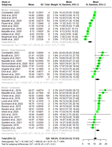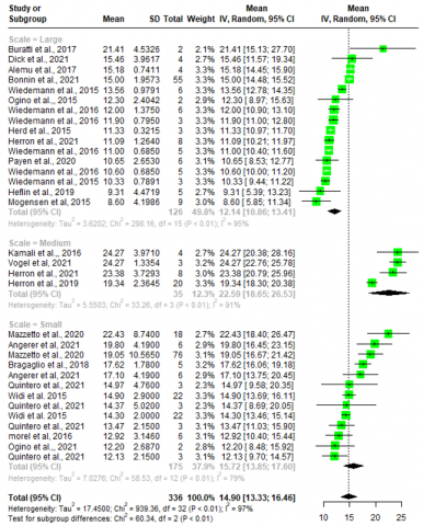 Selected studies were categorized based on various factors to perform a subgroup analysis test. The categories were feed types (organic vs. inorganic), cattle farming systems (extensive vs. intensive vs. semi-intensive), farm scale (small vs. medium vs. large), and production stages (cow-calf vs. finisher vs. cow-calf-finisher). Each category had its distinctive traits to determine for each subgroup. The subgroups selected in this study were chosen for two key reasons: their general applicability and widespread use in prior research, ensuring abundant data availability, and their significant impact on GWP, making them a frequent focus in scientific literature. Subgroup analysis in this context not only provides global benchmark references but also allows for specific benchmark values per category, offering deeper insights into the factors influencing GWP.