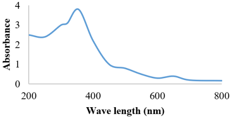 The generated nanoparticles' UV-visible absorption spectra validated the earlier ocular observation. They confirmed their synthesis with a distinct peak at 355 nm (Figure 4), which is a feature of ZnO nanoparticles [4].