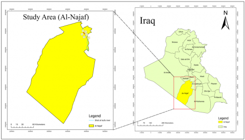 The study focuses on the Kufa River, a significant branch of the Euphrates River, located in Al-Najaf Governorate located in Iraq. This river is essential for drinking water, industrial uses, and irrigation for agricultural areas along its 42 km distance, which runs from the Kufa Barrage to the Abo Sakhir Regulator, as shown in Figure 1. One of the Middle East's longest rivers, the Euphrates, is vital for sustaining ecosystems and supporting the livelihoods of millions, particularly in Iraq. Before entering Al-Najaf, the Euphrates splits into the Kufa and Al-Abbasiya rivers. This study focused on the Kufa River (Figure 2) only because of the many pollutants that drain into the river, and it is the primary source of drinking and irrigation for large areas of agriculture.
