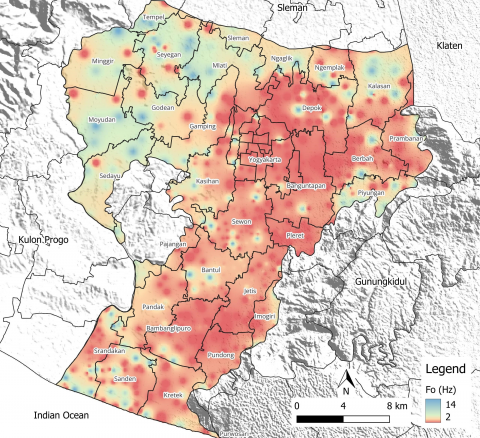 Figure 6. Map of the resonant site frequency (F0) in Yogyakarta Basin