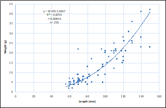 Additionally, growth patterns can be analyzed through the calculation of the length-weight relationship of fish, referring to the formula by [53].