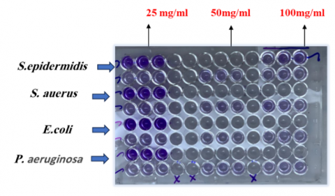 Figure 5. Biofilm formation by wound bacterial isolates using FeNPs