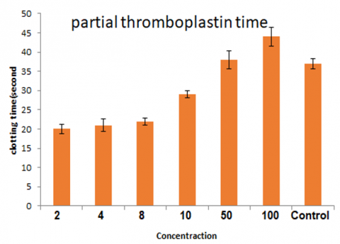 Figure 6. The effect of nano iron (FeNPs) on PTT clotting agent (unit: µg/mL)
