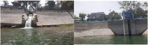 Figure 2. Location of net installation and water quality observations inlet (left) and outlet (right)