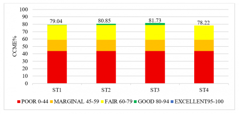 The Canadian water quality index (CCME WQI) was used for three seasons: Autumn, Winter, and Spring, between September 2024 and May 2025.