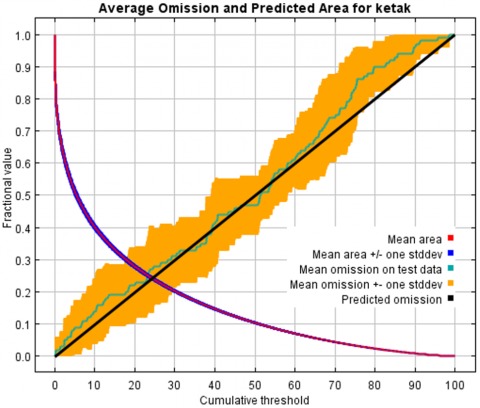 Figure 5. The curve of the predicted area and test omission rate for L. circinnatum