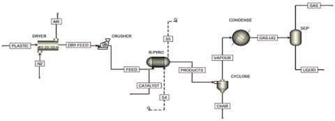 Figure 2. Plastic waste pyrolysis process simulation flowsheet