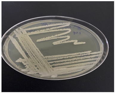 To select the strain, DNA was isolated using the boiling method. The isolate was streaked onto a plate of fresh agar, and approximately 10 colonies were transferred into an Eppendorf tube containing 400 μl of double-distilled water (dd H₂O). To lyse the cells, take the Eppendorf tube and place it in a water bath at 100℃ for 15 min. The tube was then cooled directly on ice and subjected to heat shock at -20℃ for 20 min. Afterward, the tube was allowed to stand at room temperature and homogenized by vortexing for 10 s. The mixture was centrifuged for 15 min at 4℃. The upper layer was aqueous, which was carefully collected and taken into another sterile Eppendorf tube, and this DNA sample was frozen until further use [7].