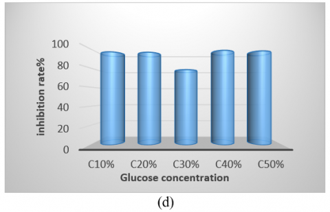 Glucose Concentration: Various concentrations of glucose (1%, 2%, 3%, 4%, and 5%) were added to the optimal growth medium. Glucose serves as a primary carbon source that can significantly influence the metabolic activity of Bacillus spp., promoting the production of antimicrobial compounds [14]. After optimizing the culture conditions at pH 7 and a temperature of 50℃ for four days, we centrifuged each culture at 3000 rpm for 20 min to separate the supernatant. Evaluated antimicrobial activity of the isolates against Staphylococcus aureus by a broth macrodilution assay as described in CLSI standard guidelines.