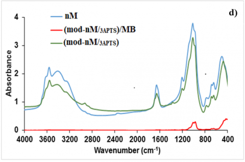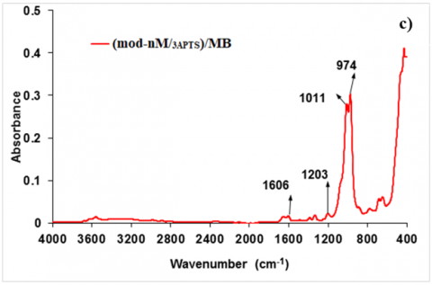 2.2 FTIR interpretation of the modified meerschaum (mod-nM/3APTS) and modified meerschaum adsorbed methylene blue (mod-nM/3APTS /MB)