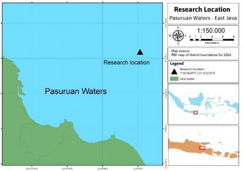 Figure 1. Location of the fixed lift-net used for the experiment in Pasuruan coastal waters
