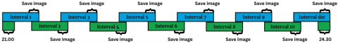 Figure 3. Time sequence of fish distribution observations and data storage intervals during night fishing experiments