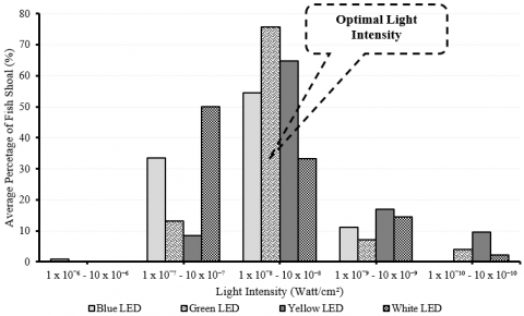 Experimental and field studies conducted during the last decade demonstrate that both spectral composition and intensity of LED illumination strongly influence attraction, vertical distribution, and schooling cohesion of commercially important species [2, 5-7]. Furthermore, in situ trials indicate that LED configuration and intensity determine not only immediate attraction but also the spatio-temporal stability of shoals under operational fishing conditions [3, 7].