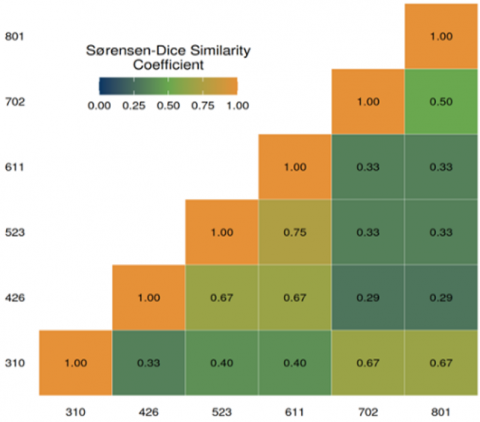 Figure 2. The result of the calculation of the Sørensen-Dice similarity coefficient