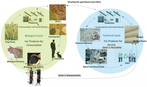 Figure 1. A graph showing the bio-flexi HDF fiberboard's closed suggested cycle following the cradle-to-cradle [9]