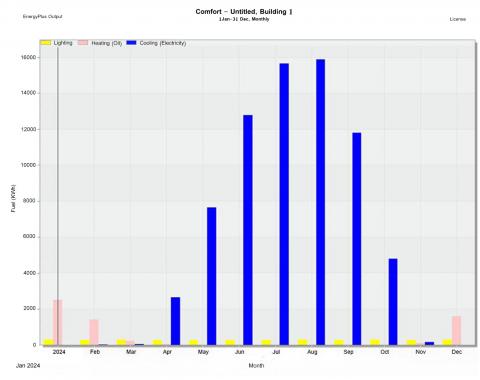The comparative analysis of the six alternative wall systems indicates that there are evident differences in the cooling energy requirements and thermal comfort. The base case (concrete block) had the largest monthly cooling load (average of 9672 kWh/month), which is not surprising, as the thermal resistance of traditional construction in hot-arid climates is low. Conversely, biomimetic aerogel panels recorded the least consumption (5549 kWh/month), equivalent to 42.6 percent savings, with compressed straw bale panels coming next (5667 kWh/month) (Table 10, Figures 12-13). These findings indicate the high level of insulation of aerogel and straw bale that effectively restrained conductive heating of the south facade.