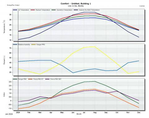 Based on the summarized outcomes in Table 12, the following discussion elaborates on the comparative implications of energy savings and thermal comfort, with reference to Figures 12-15.