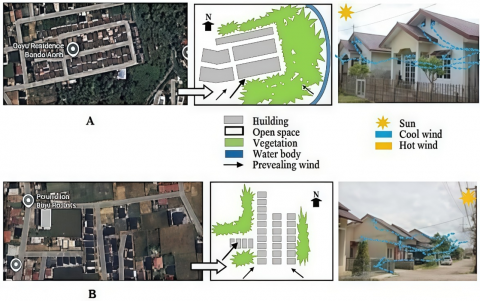 In contrast, modern housing clusters in Banda Aceh, such as the six examined in this study (P1WU, P2WU, P1WT, P2WT, P1WS, and P2WS), have emerged from rapid urbanization and market-driven planning. These developments often reduce spatial porosity and diminish vegetative layers, which were once integral to traditional thermal comfort strategies.