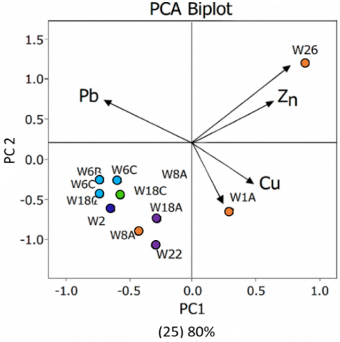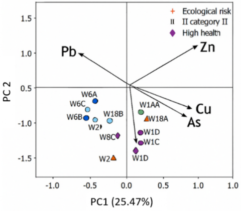Figure 9. The PCA biplot demonstrates ecological and health risk in Wayang Windu