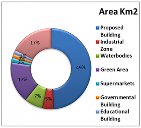 Figure 3 illustrates the land distribution and planning ratios according to the required needs. Next, create the shapefile (vector data) that will be used later in the deep learning tool. This area lacks adequate services and green spaces, which currently account for 17%, with the ambition of reaching 20–25% in accordance with international standards. Its location overlooking the Euphrates River and its proximity to a highway make it an ideal location for planning and achieving sustainable development. The efficiency of green spaces was evaluated by analysing area and location criteria, as well as climate temperatures. The spatial criterion serves as a constructive indicator of the capacity to employ green areas in environmentally beneficial ways. The examined region was categorized based on patterns of land utilization and the availability of natural and physical resources, as shown in Table 3.