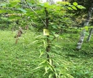 Figure 1. Ketak planting performance with climbing tree (1) Bamboo (bamboo poles), (2) Dadap (E. variegata), (3) Gamal (G. sepium), and (4) Kelicung (D. malabarica)