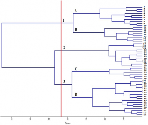 Figure 5. Cluster analysis based on OIV descriptors from grape varieties