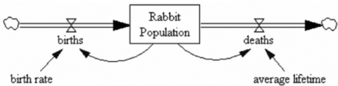 Figure 3. Diagram of a simple population model used to exemplify the basics of SD modelling and to build up the understanding of the stocks and flows concepts