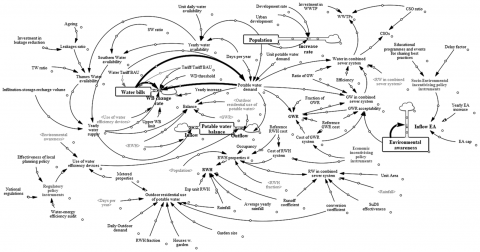 Table 2. List of key variables included in the Ebbsfleet SD model. GWR = Greywater Reuse, RWH = Rainwater Harvesting, GW = Greywater, CSOs = Combined Sewer Overflows