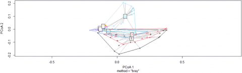 ii) Bray-Curtis distance matrix using the vegdist function to calculate dissimilarity indices [45].