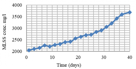 MLSS concentration was continuously tested in this period which showed a noticeable increase. This period was extended for 40 days before starting the experimental work procedure.