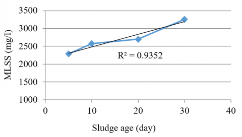 The relationship between sludge age and MLSS concentration is investigated too. Figure 8 shows the results of this part of the investigation.
