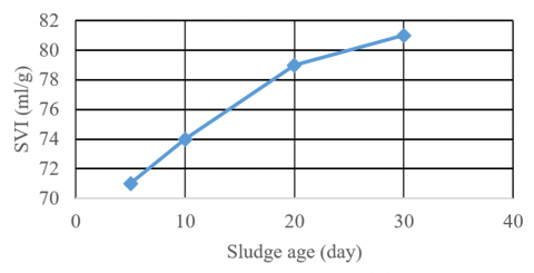 Figure 9. The variation of SVI with sludge age